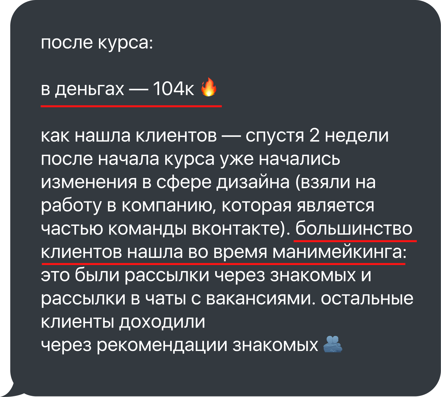 - помощь с формированием своего первого продукта, за счет которого окупишь курс